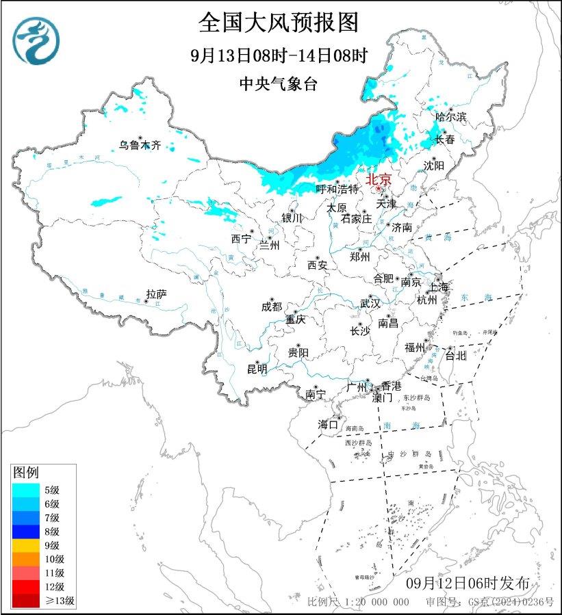 中央氣象臺(tái)9月12日6時(shí)繼續(xù)發(fā)布大風(fēng)藍(lán)色預(yù)警: