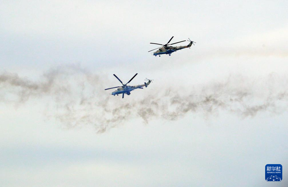這是9月15日在白俄羅斯明斯克州拍攝的俄白“西部-2025”聯(lián)合戰(zhàn)略演習(xí)現(xiàn)場的直升機。新華社發(fā)(任科夫攝)