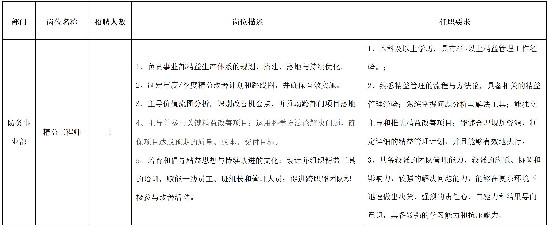 現(xiàn)因公司經(jīng)營(yíng)發(fā)展需要,現(xiàn)面向長(zhǎng)虹控股集團(tuán)內(nèi)、外部誠(chéng)聘精益工程師崗位人員,具體崗位招聘信息公告如下: