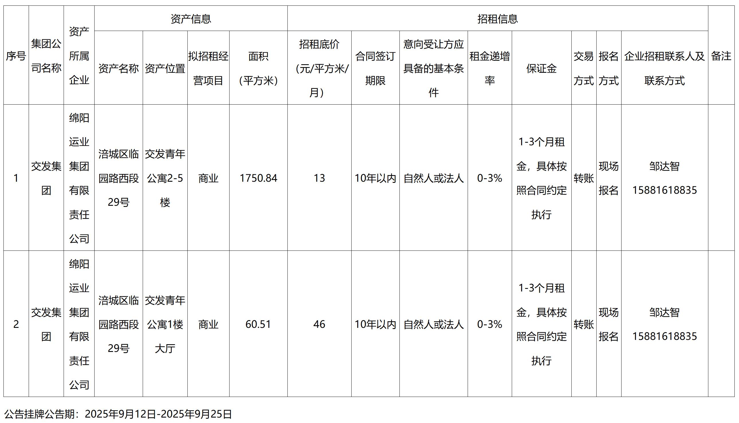 綿陽運業(yè)集團有限責(zé)任公司經(jīng)營性資產(chǎn)出租公告