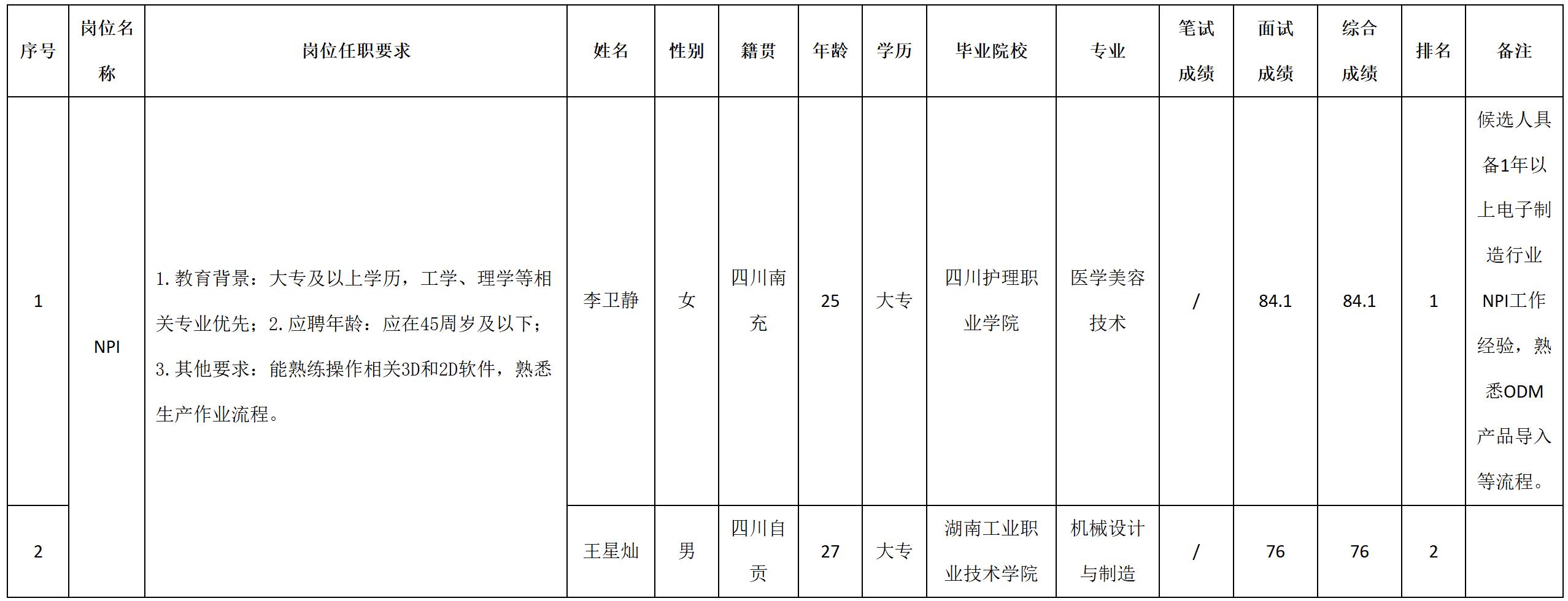 根據四川九州電子科技股份有限公司發(fā)布的招聘公告及招聘相關規(guī)定,經筆試、面試等程序,現將筆試(面試)成績予以公示。