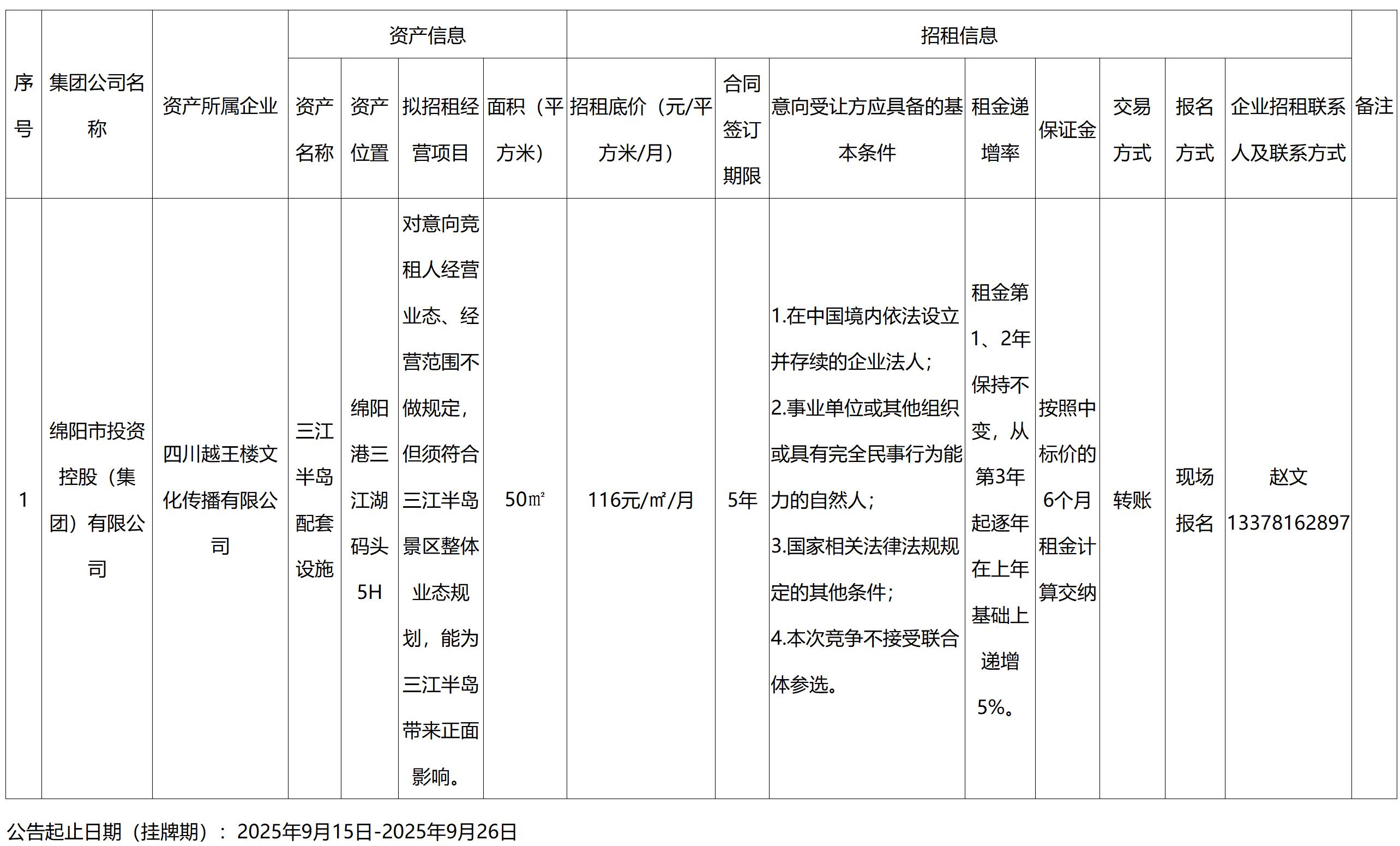 四川越王樓文化傳播有限公司資產(chǎn)出租公告