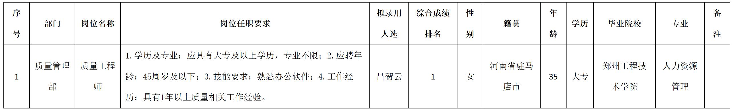 根據(jù)四川九州光電子技術(shù)有限公司發(fā)布的招聘公告及招聘相關(guān)規(guī)定,經(jīng)筆試、面試、考察、體檢等程序,擬錄用呂賀云同志到四川九州光電子技術(shù)有限公司工作,現(xiàn)予以公示,具體情況如下: