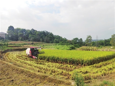 江油市太平鎮(zhèn)大荍村水稻收割現(xiàn)場