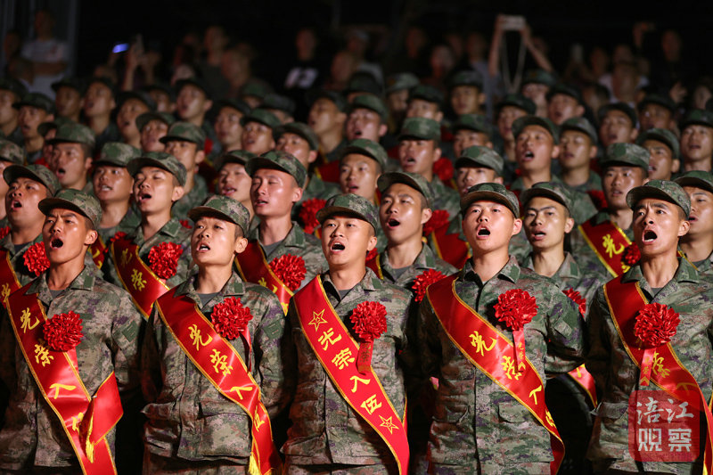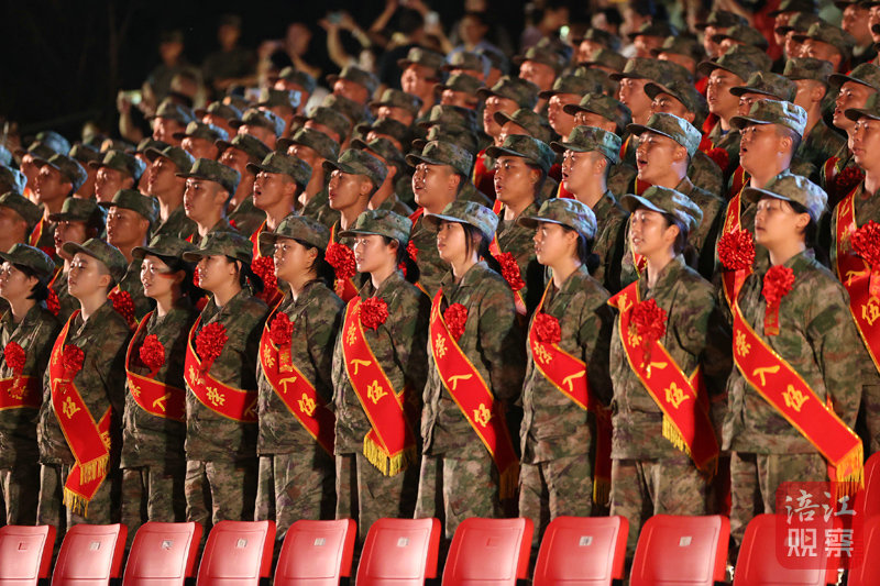 演出結(jié)束后,新兵們整齊列隊(duì),高唱軍歌《當(dāng)那一天來臨》——“準(zhǔn)備好了嗎,士兵兄弟們,當(dāng)那一天真的來臨……”鏗鏘有力的歌聲回蕩在劇場,表達(dá)了他們保家衛(wèi)國、奮勇前進(jìn)的堅(jiān)定信念。