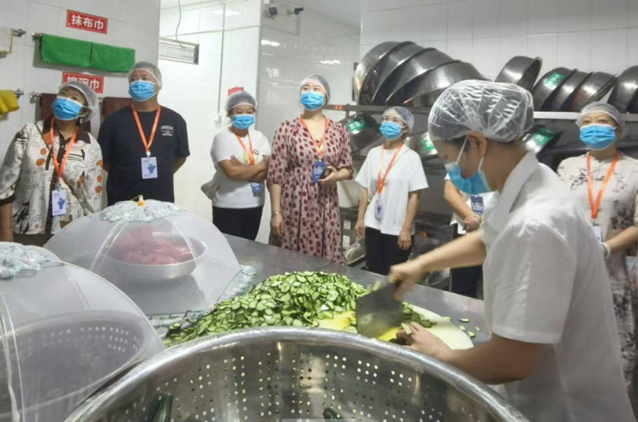 然后,實(shí)地參觀。查看食堂信息公示欄和互聯(lián)網(wǎng)+“明廚亮灶”工程、食堂智能化管理系統(tǒng);參觀庫(kù)房、廚房設(shè)施設(shè)備、環(huán)境衛(wèi)生、餐具消毒等方面的工作實(shí)施情況。