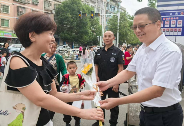 上午7時(shí)30分,該校全體行政干部準(zhǔn)時(shí)在校門(mén)口迎接老師們的到來(lái),并向每位教師送上了鮮花和節(jié)日的祝福。