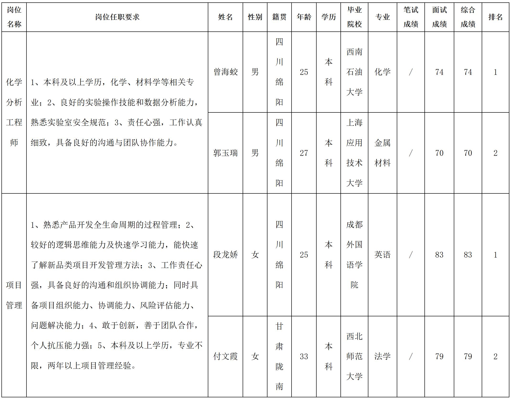 根據(jù)四川華豐科技股份有限公司發(fā)布的招聘公告及招聘相關(guān)規(guī)定,經(jīng)筆試、面試等程序,現(xiàn)將筆試(面試)成績予以公示。