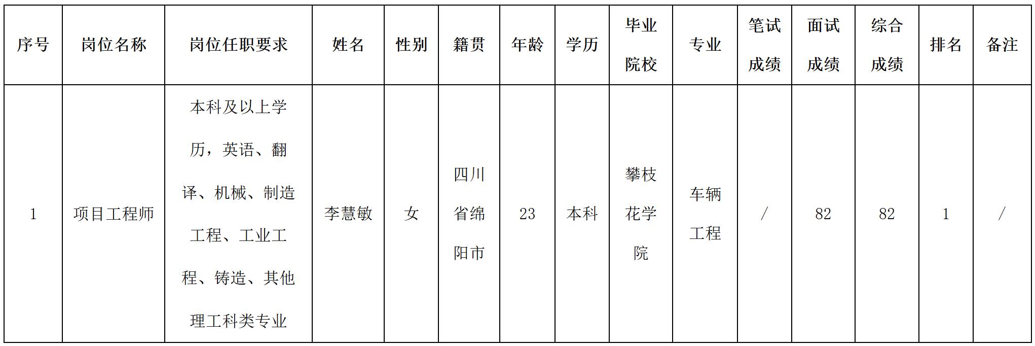 根據(jù)四川波鴻實業(yè)有限公司發(fā)布的招聘公告及招聘相關規(guī)定,經(jīng)面試等程序,現(xiàn)將面試成績予以公示。