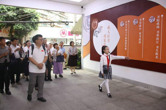 綿陽新聞網(wǎng)訊 9月18日上午,三亞市中小學(xué)骨干校長50余人及西南大學(xué)、綿陽市教科所相關(guān)專家領(lǐng)導(dǎo)共計60余人組成的研修班一行到訪成綿路小學(xué)教育集團(tuán)成綿校區(qū),開展了以“文脈綿延展特色 書香致遠(yuǎn)譜新篇”為主題的參觀交流活動,共赴一場書香浸潤的教育對話。