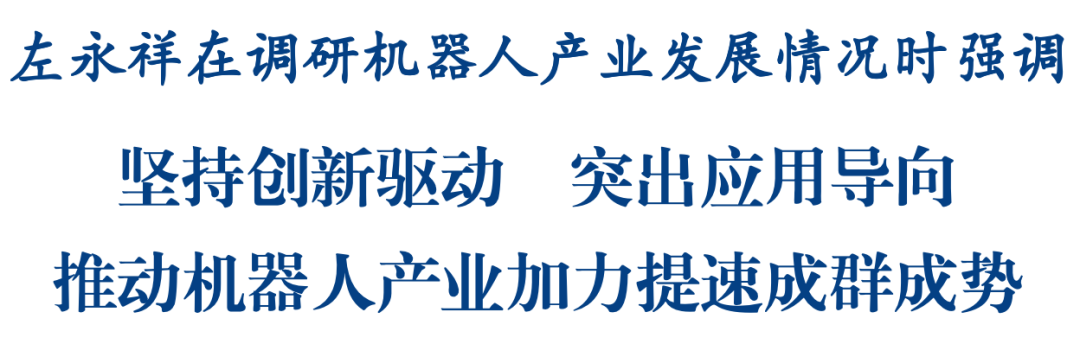 9月24日,省委常委、市委書記左永祥調(diào)研機(jī)器人產(chǎn)業(yè)發(fā)展情況。他強(qiáng)調(diào),要深入學(xué)習(xí)貫徹習(xí)近平總書記關(guān)于發(fā)展新質(zhì)生產(chǎn)力的重要論述和對(duì)四川工作系列重要指示精神,認(rèn)真落實(shí)黨中央、國(guó)務(wù)院和省委、省政府部署要求,搶抓新一輪科技革命和產(chǎn)業(yè)變革機(jī)遇,堅(jiān)持創(chuàng)新驅(qū)動(dòng)、突出應(yīng)用導(dǎo)向,推動(dòng)機(jī)器人產(chǎn)業(yè)加力提速、成群成勢(shì),進(jìn)一步筑牢綿陽(yáng)高質(zhì)量發(fā)展堅(jiān)實(shí)支撐。