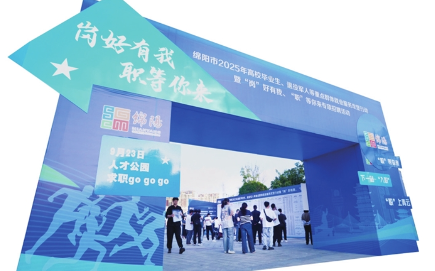 金秋時(shí)節(jié),秋招正熱。9月23日傍晚,由四川省就業(yè)服務(wù)管理局指導(dǎo),四川省職業(yè)介紹服務(wù)中心、綿陽市人力資源和社會(huì)保障局、綿陽市退役軍人事務(wù)局等單位共同主辦,綿陽市就業(yè)創(chuàng)業(yè)促進(jìn)中心、江油市人力資源和社會(huì)保障局承辦的“綿陽市2025年高校畢業(yè)生、退役軍人等重點(diǎn)群體就業(yè)服務(wù)攻堅(jiān)行動(dòng)暨‘崗’好有我、‘職’等你來專項(xiàng)招聘活動(dòng)”在綿陽科技城人才公園舉辦。