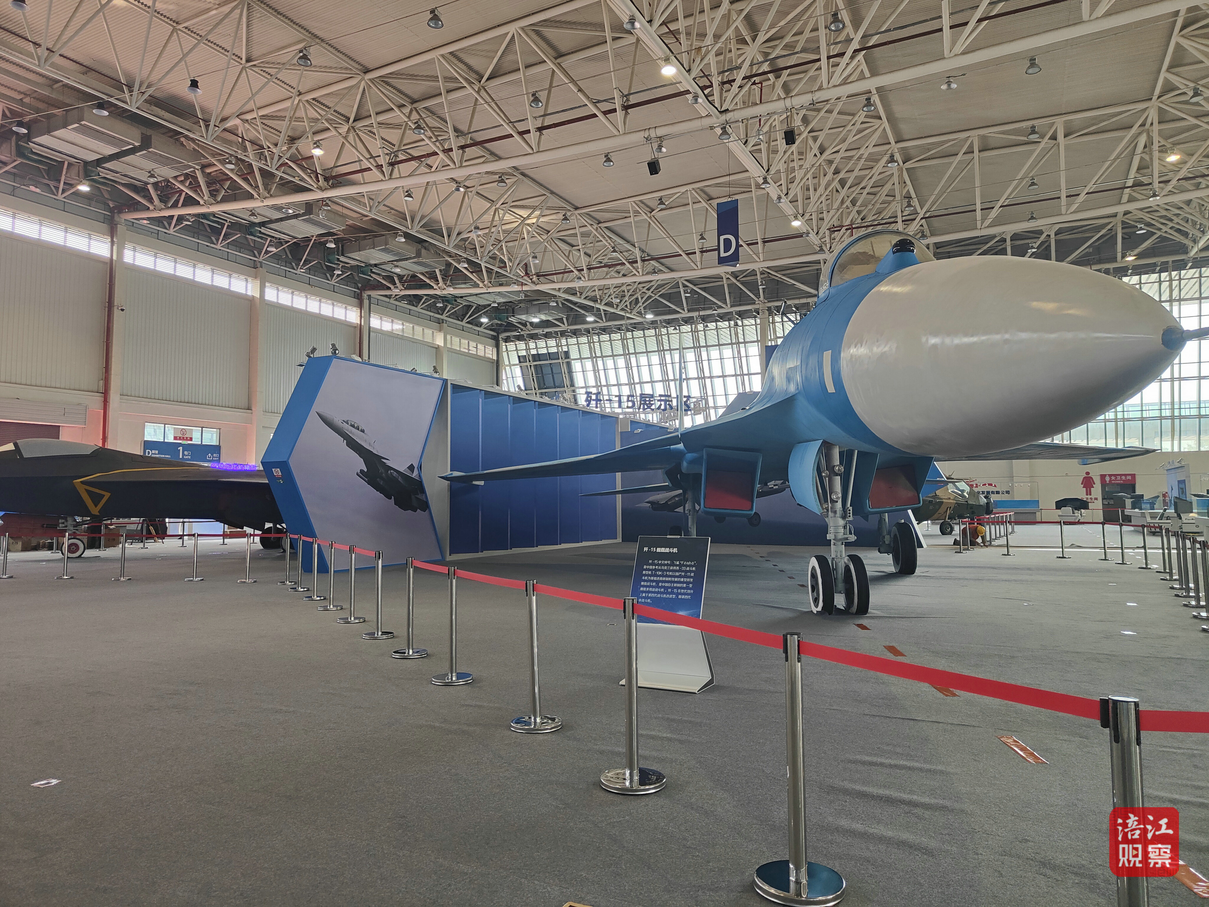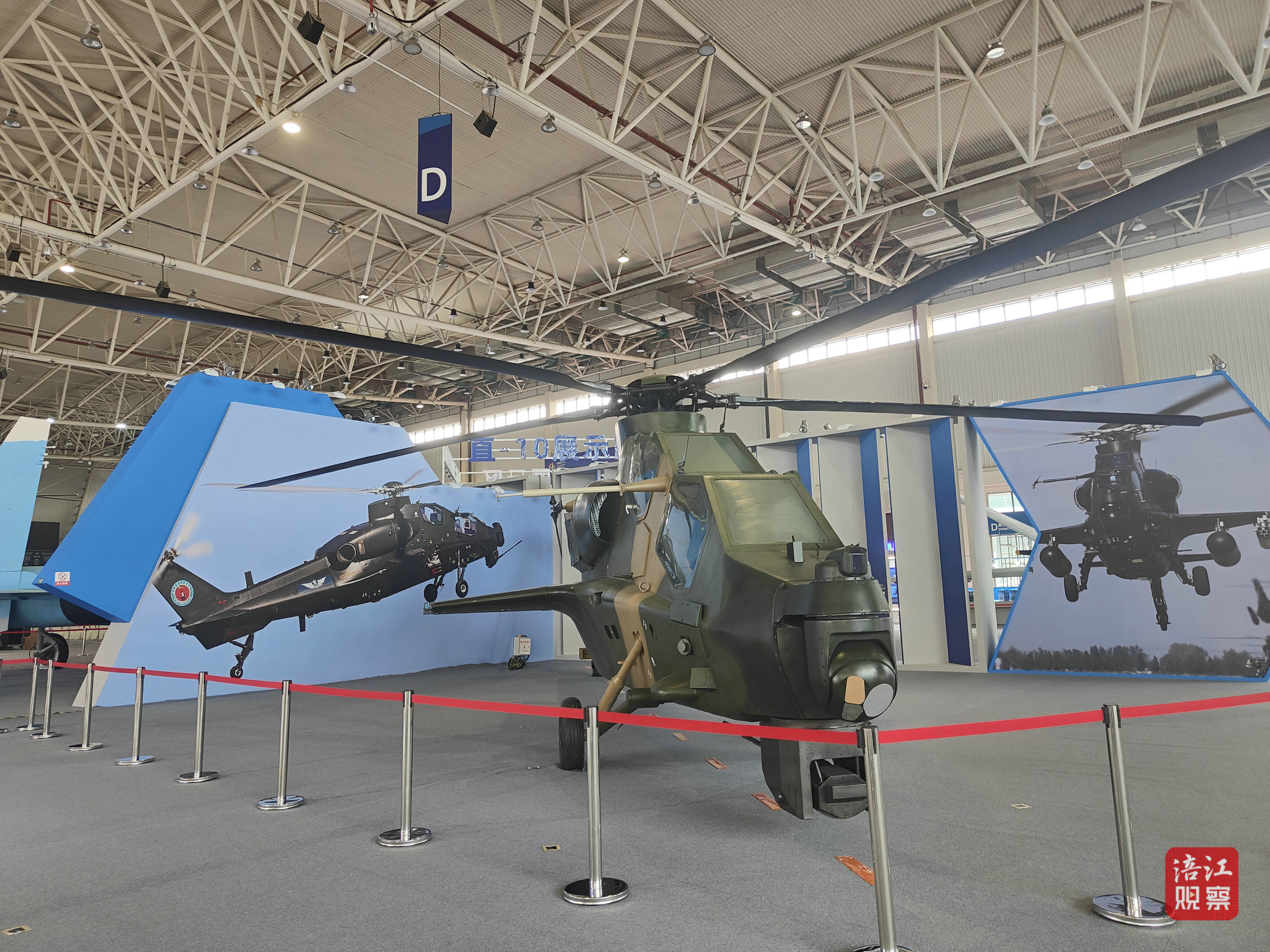 首先映入眼簾的是四架全尺寸飛機模型,分別是FC-31“鶻鷹”戰(zhàn)斗機、翼龍無人機、直-10武裝直升機、殲-15艦載戰(zhàn)斗機。在它們的周圍,今年九三閱兵梯隊主題展也即將布置結(jié)束,模型+圖文介紹的形式將全景式展現(xiàn)我國航空工業(yè)的輝煌成就。