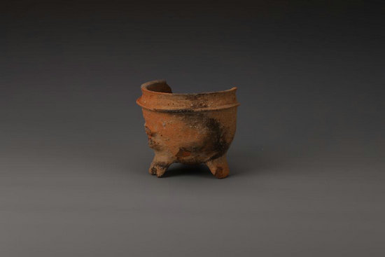 斗山遺址出土的馬家浜文化時期的陶鼎。(江蘇省文物考古研究院供圖)