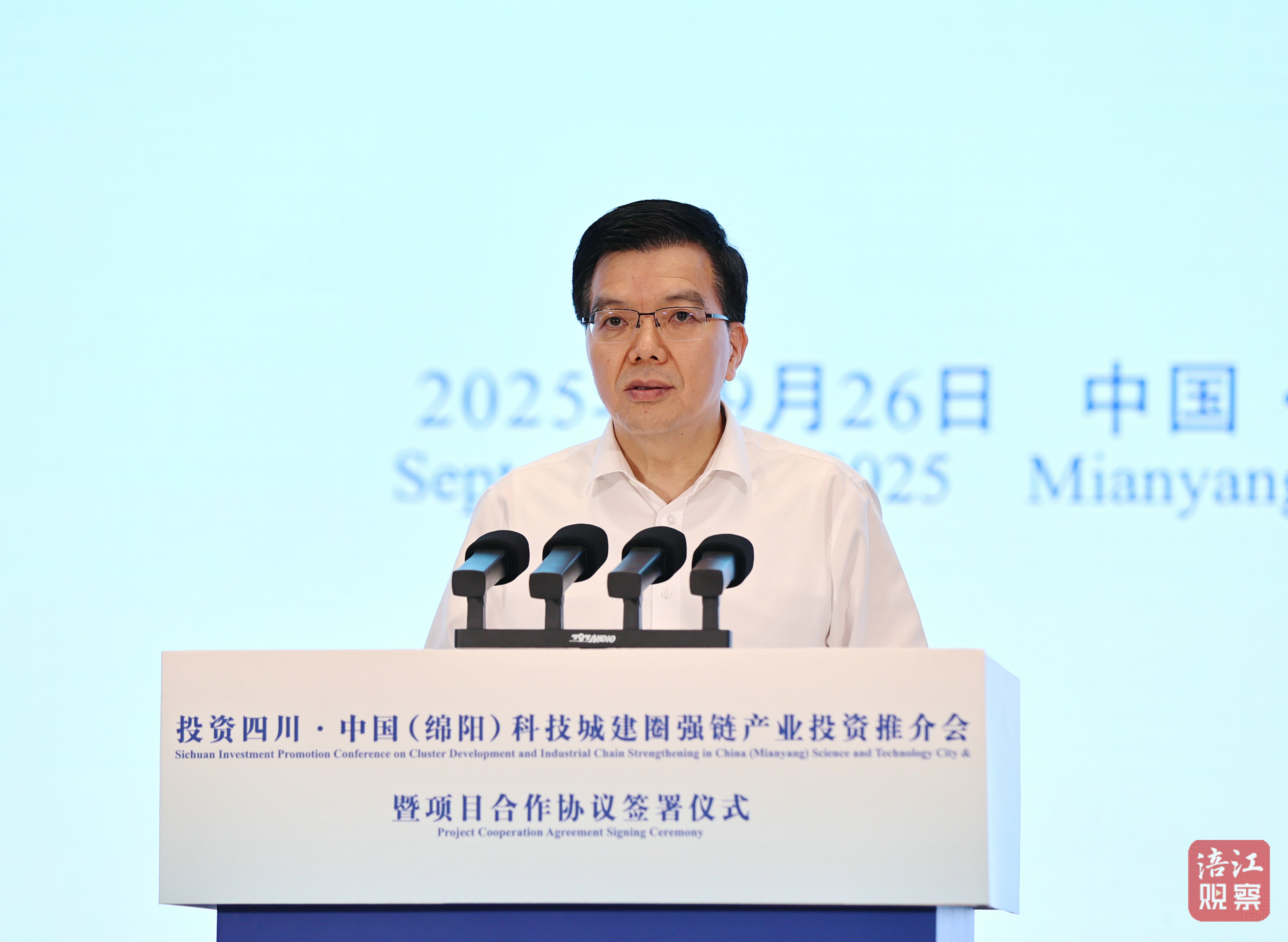 綿陽新聞網(wǎng)訊 9月26日,投資四川·中國(綿陽)科技城建圈強鏈產(chǎn)業(yè)投資推介會暨項目合作協(xié)議簽署儀式舉行。省委常委、綿陽市委書記左永祥出席并致辭,省經(jīng)濟合作局黨組書記、局長吳曉曦主持,綿陽市委副書記、政法委書記莫懷學(xué)出席。