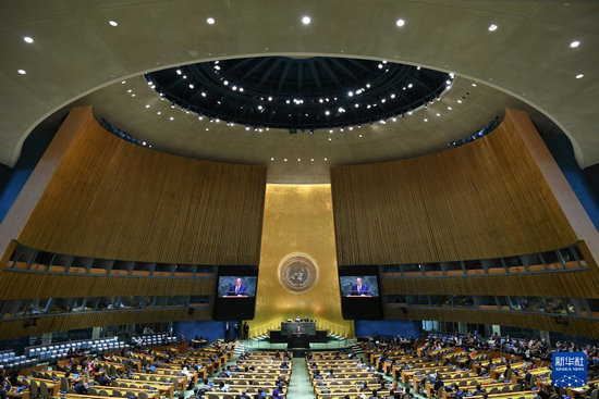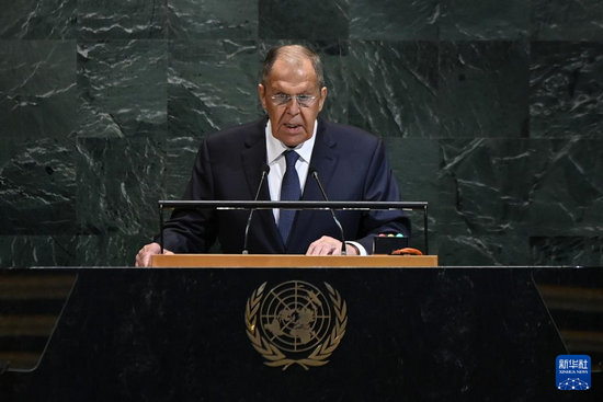 9月27日,在位于紐約的聯(lián)合國總部,俄羅斯外交部長拉夫羅夫在第80屆聯(lián)合國大會一般性辯論上發(fā)言。新華社記者 李睿 攝