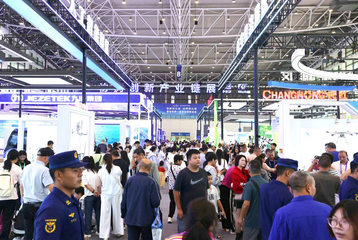 執(zhí)行中國(guó)首次火星探測(cè)任務(wù)的“天問(wèn)一號(hào)”、FH-95中遠(yuǎn)程多用途無(wú)人機(jī)系統(tǒng)、北斗組網(wǎng)模型……這些“國(guó)之重器”都在這里亮相。此外,長(zhǎng)虹控股集團(tuán)帶來(lái)的“天幕”“天盾”反無(wú)人機(jī)系統(tǒng),能實(shí)現(xiàn)對(duì)防護(hù)空域的縱深監(jiān)控和立體防護(hù),科技感拉滿。