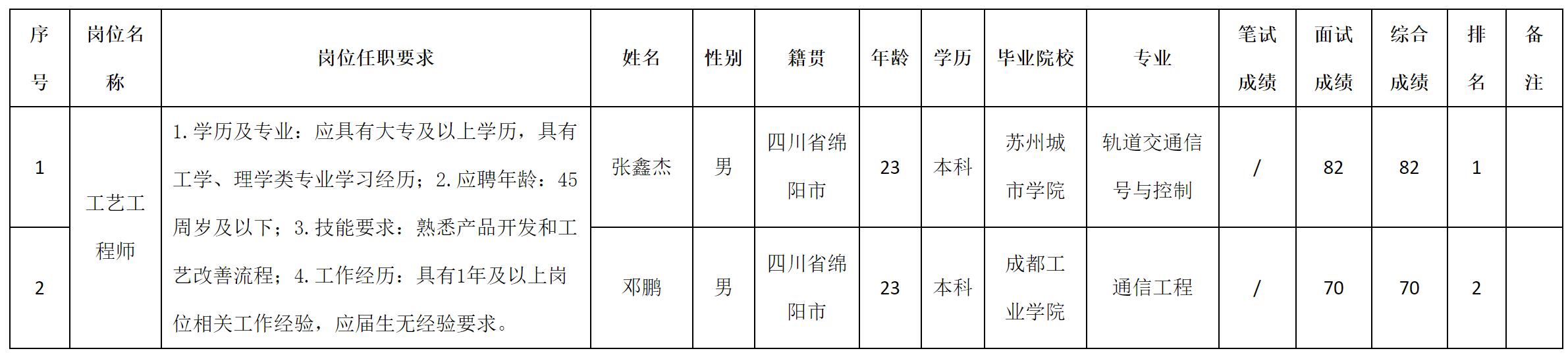 根據(jù)四川九華光子通信技術(shù)有限公司發(fā)布的招聘公告及招聘相關(guān)規(guī)定,經(jīng)面試等程序,現(xiàn)將面試成績予以公示。
