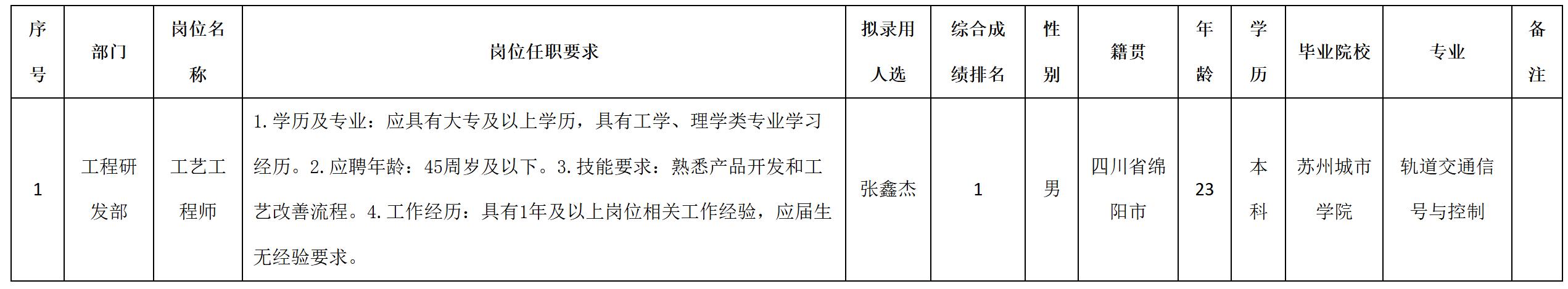 根據(jù)四川九華光子通信技術(shù)有限公司發(fā)布的招聘公告及招聘相關(guān)規(guī)定,經(jīng)測試、考察、體檢等程序,擬錄用張鑫杰同志到四川九華光子通信技術(shù)有限公司工作,現(xiàn)予以公示,具體情況如下: