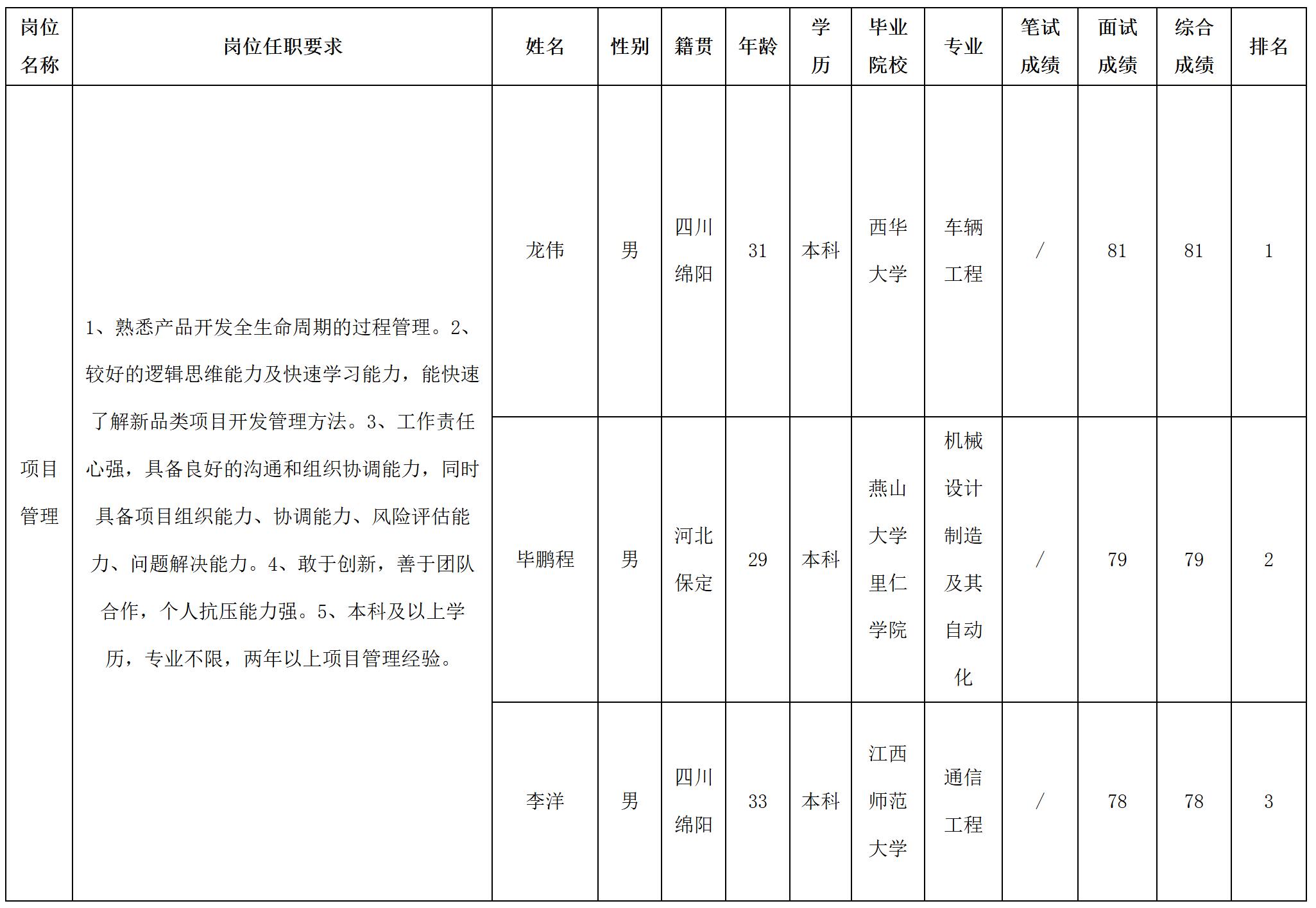根據(jù)四川華豐科技股份有限公司發(fā)布的招聘公告及招聘相關(guān)規(guī)定,經(jīng)面試等程序,現(xiàn)將面試成績(jī)予以公示。